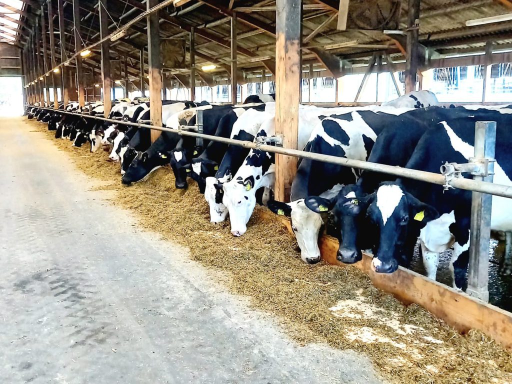 In der Milchviehanlage in Treppeln beherbergen wir durchschnittlich 800 Milchkühe sowie deren Kälber. Hier werden über 10.000 kg Milch pro Kuh im Jahr mit durchschnittlich 4 % Fett und 3,5 % Eiweiß gemolken. Unsere Tiere bekommen zum Großteil betriebseigenes Futtermittel. Die Fütterung erfolgt ganz ohne den Einsatz gentechnisch veränderter Futtermittel. Zusätzlich genießen unsere Jungrinder im Sommer die saftigen Weiden in der schönen Neuzeller Niederung.
